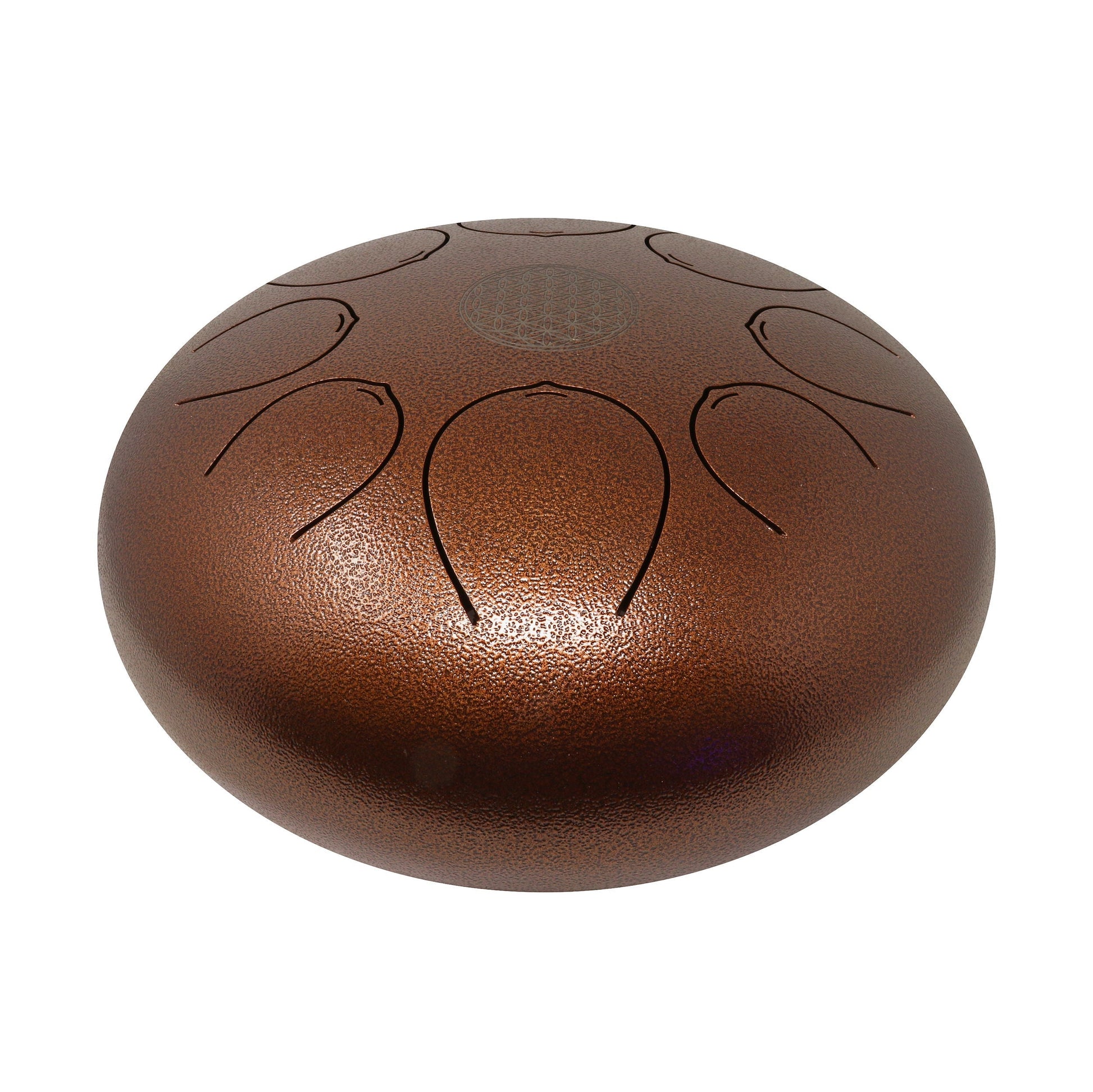 Introducing our largest tongue drum, featuring deep rich tones and a steel red shade. With its subtle yet strong appearance, it complements any workspace or home. Adorned with the beautiful symbol of the flower of life, this drum is perfect for meditation spaces or living rooms. Easily transportable with its included travel bag/backpack, you can enjoy its melodic sounds anywhere. Originating from ancient predecessors like the Aztec log drum and African Slit Drum, the modern steel tongue drum is accessible to everyone, regardless of musical background. Simply pick up the mallets and start playing the tongue-shaped cutouts. No right or wrong way, just pure enjoyment.