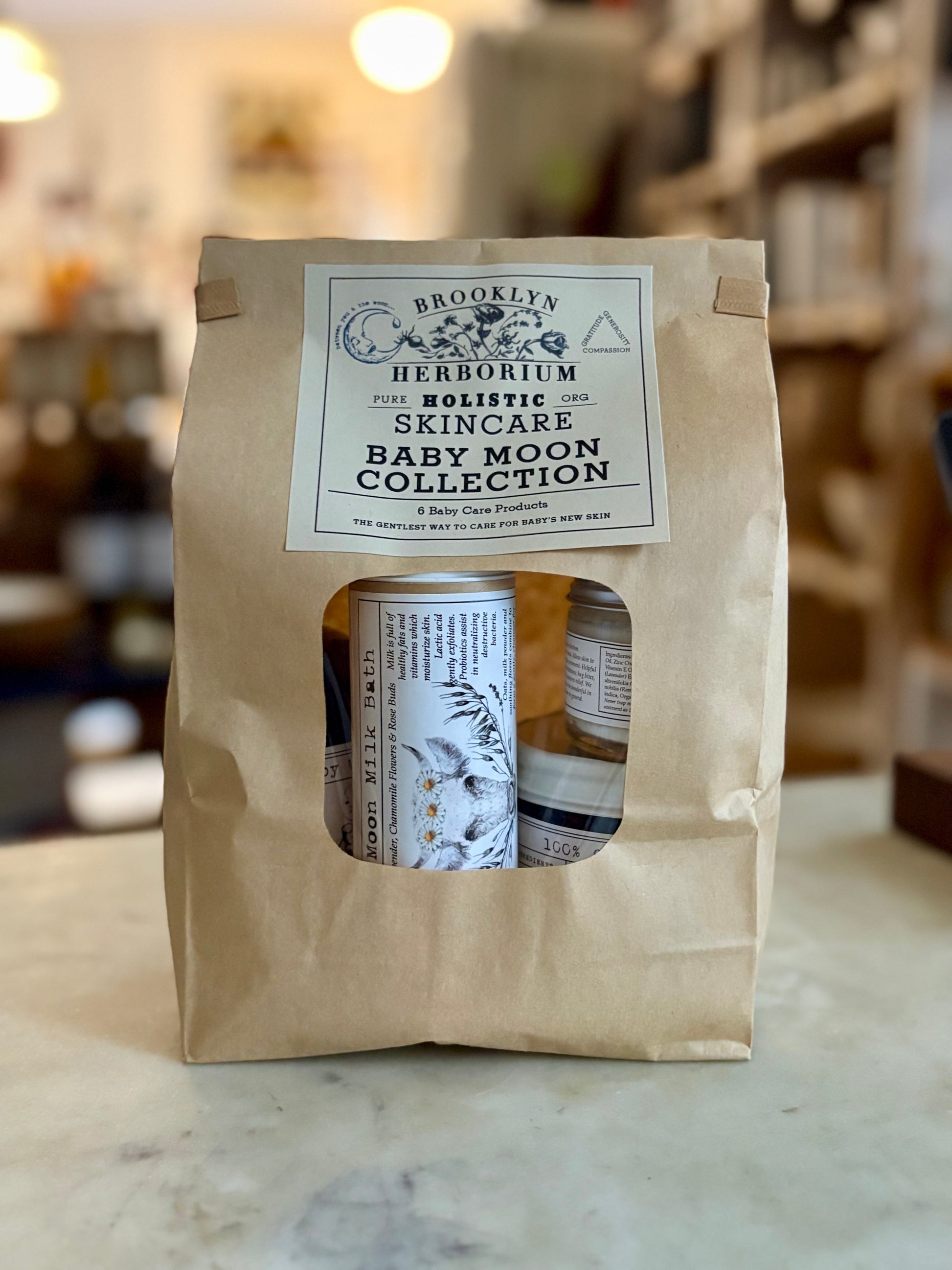 The Baby Moon Collection is Between You and the Moon’s gentle approach to caring for our little babies. These fine five products cover your baby’s needs from sweet hair to teeny toes. We use them on our own babies.