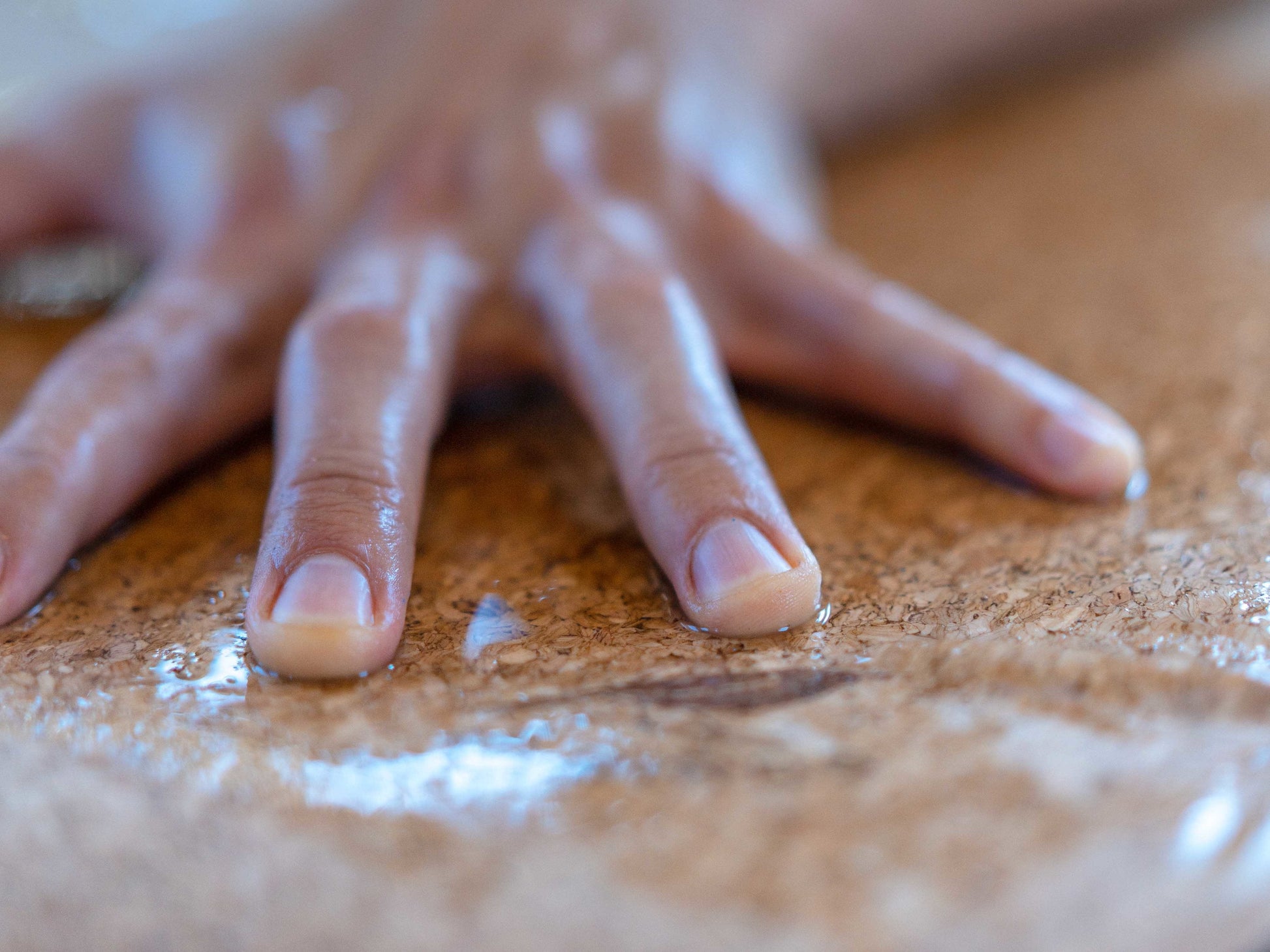 - Top side: 100% sustainable cork that provides a superior grip in both dry and wet conditions. Cork is naturally antimicrobial and self-cleaning.
