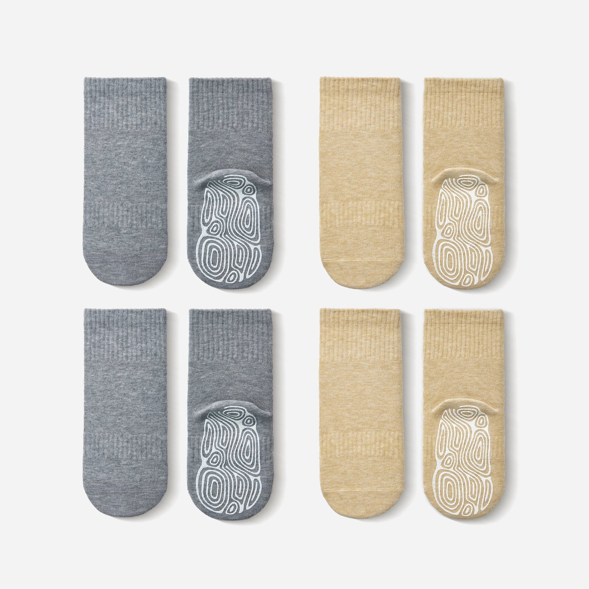 Organic Cotton Socks- Grey & Lemon- 4 Pairs of Stay-On Baby & Toddler Non-Slip Socks